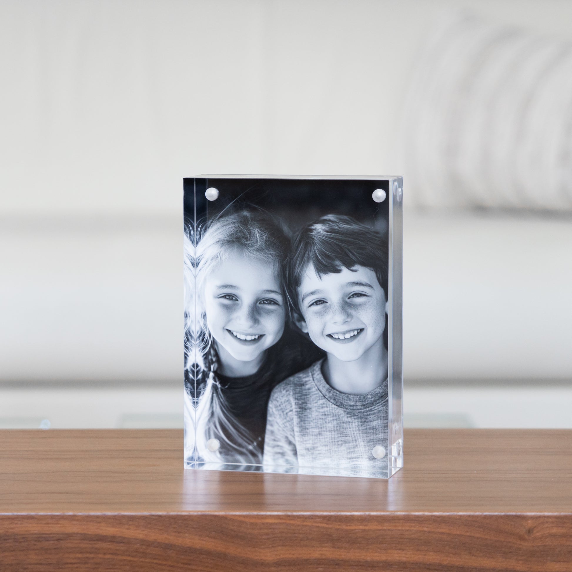 ULTRA-THICK PREMIUM ACRYLIC:Crafted with a luxurious, glass-like finish, this handcrafted acrylic frame collection merges sleek elegance with modern sophistication. Its bold and thick block structure transforms your photos into stunning statement pieces, offering unparalleled clarity and depth that enhances every cherished memory.